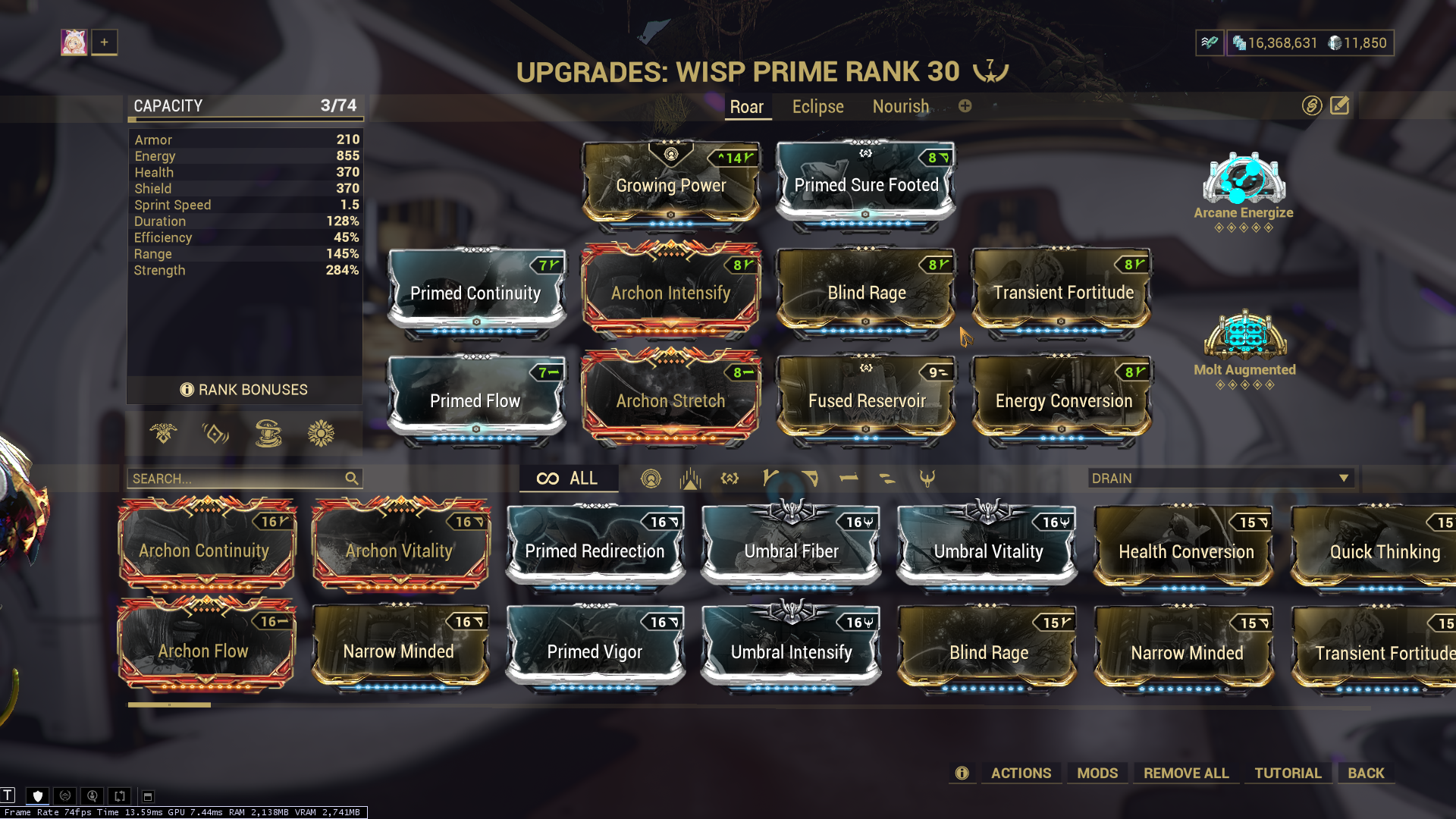 What about Helminth abilities, you ask? OK sure, I'll give you even more numbers: up to +898% more Weapons Damage Bonus thanks to Eclipse, +157% Damage Vulnerability for enemies affected by Sentient Wrath, +134.7% Increased Damage for you and your Teammates thanks to Roar, +116.8% more Weapons Void Damage Bonus thanks to [Xata]'s Whisper. Just a few examples of how Strength affect this build.
