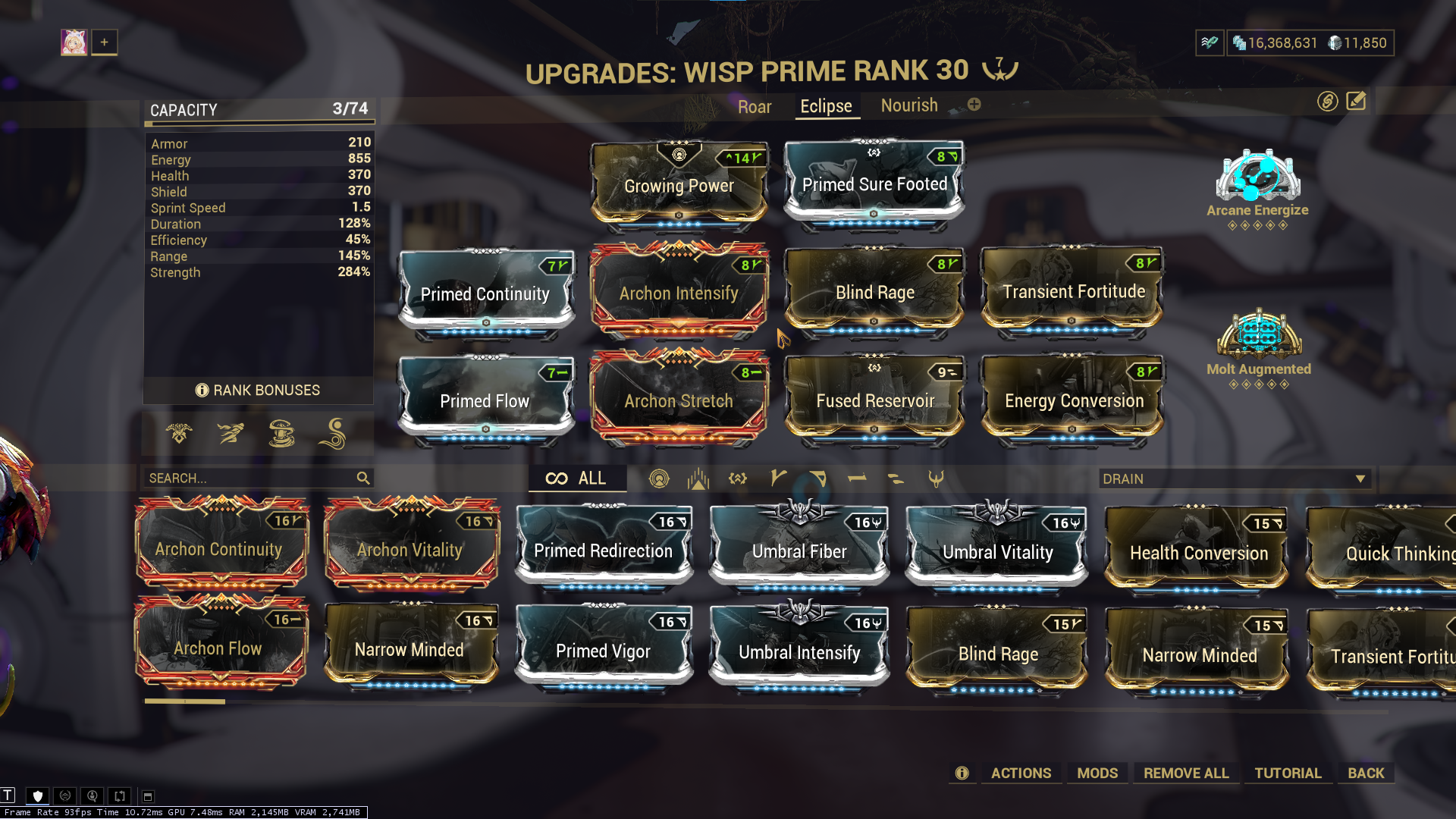 - Eclipse - with augment Total Eclipse, Damage Buff, Damage Reduction.