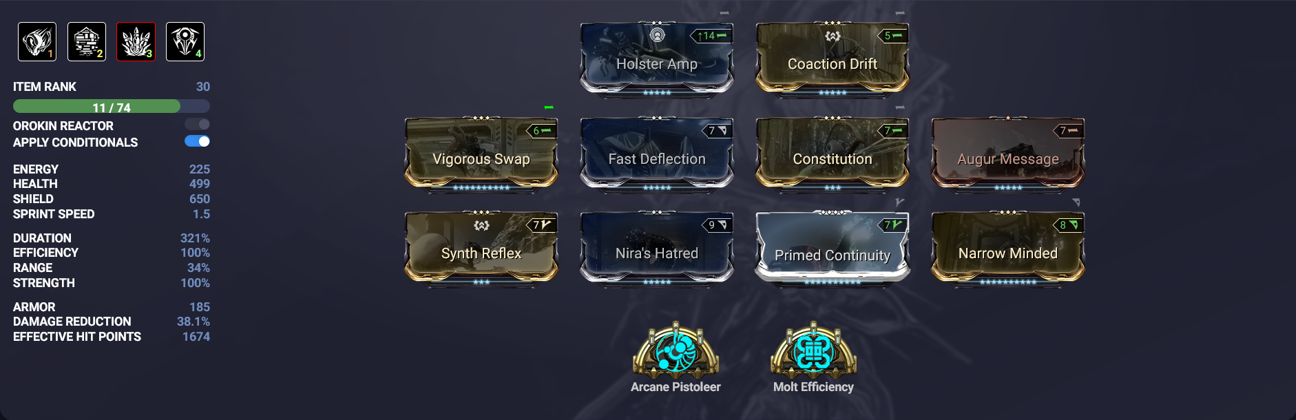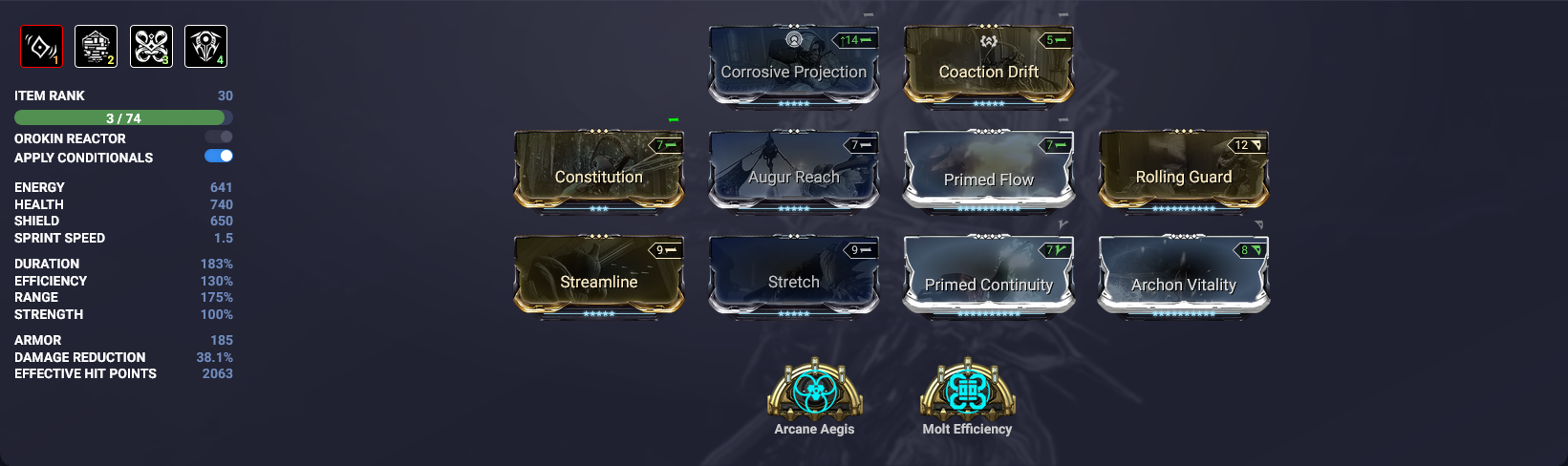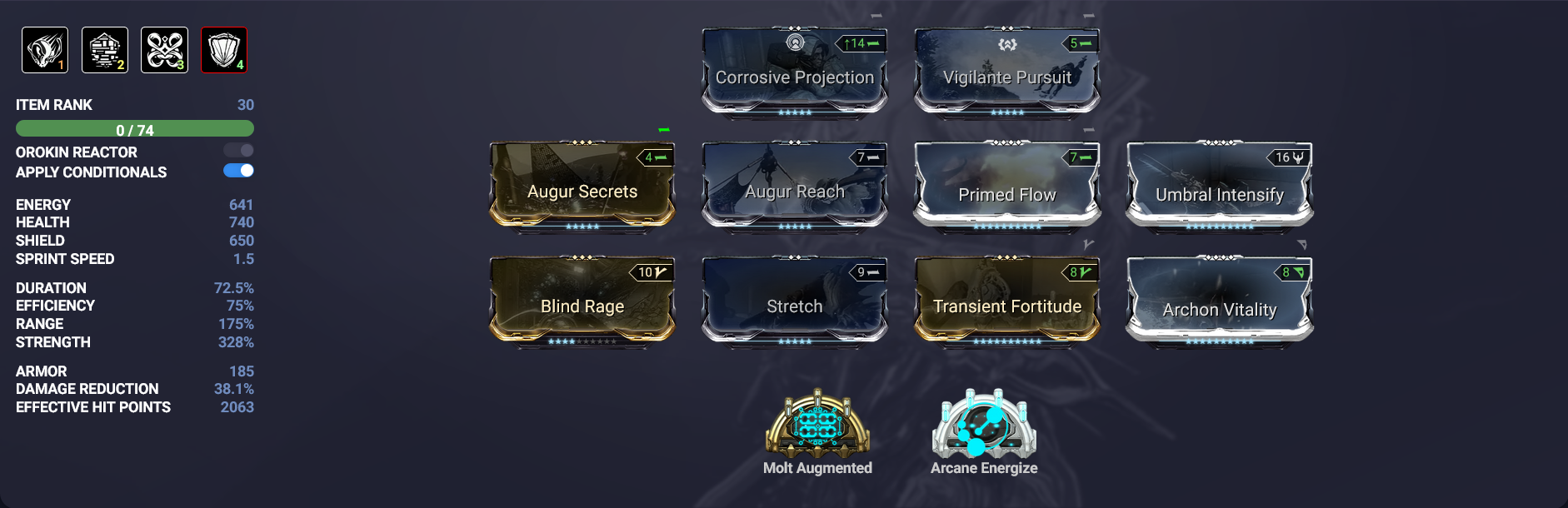 - Molt Vigor - On Operator Ability, 45% Ability Strength on next Warframe Ability Cast.