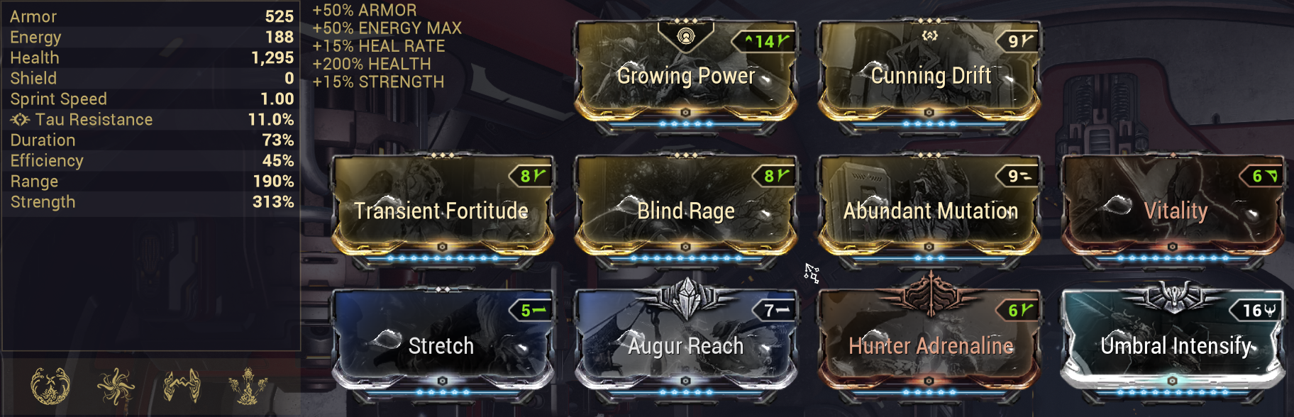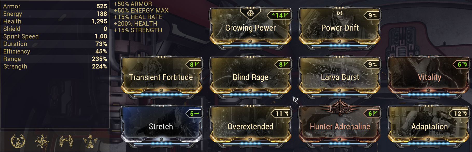 First off, the Aura slot can be whatever one wants it to be. As long as it benefits one and what they are during currently than realistically anything can work there. For instance, [Growing Power] is a Great Aura mod to increase Ability Strength, but [Steel Charge] can be a better choice. You could even use an Aura Forma on him so any mod could go there and not just Madurai "V" mods.