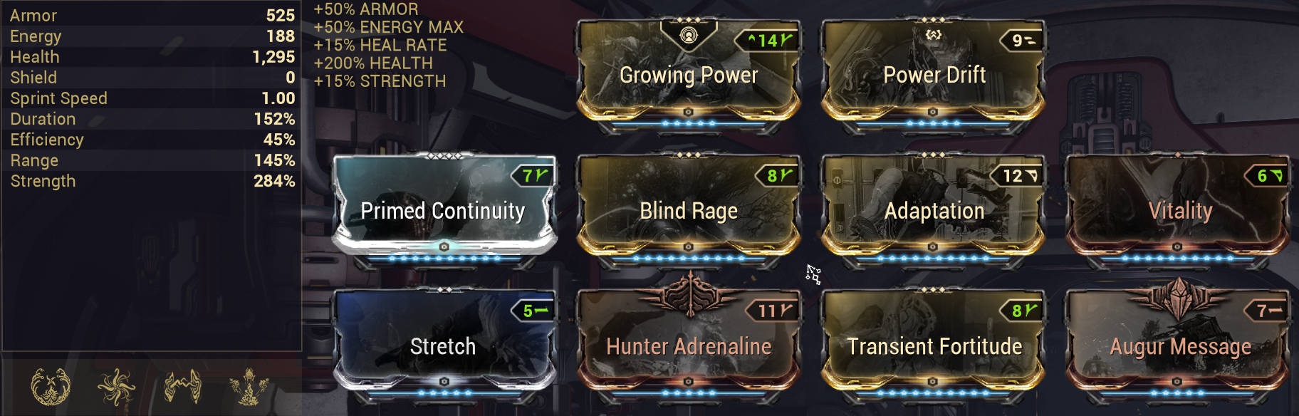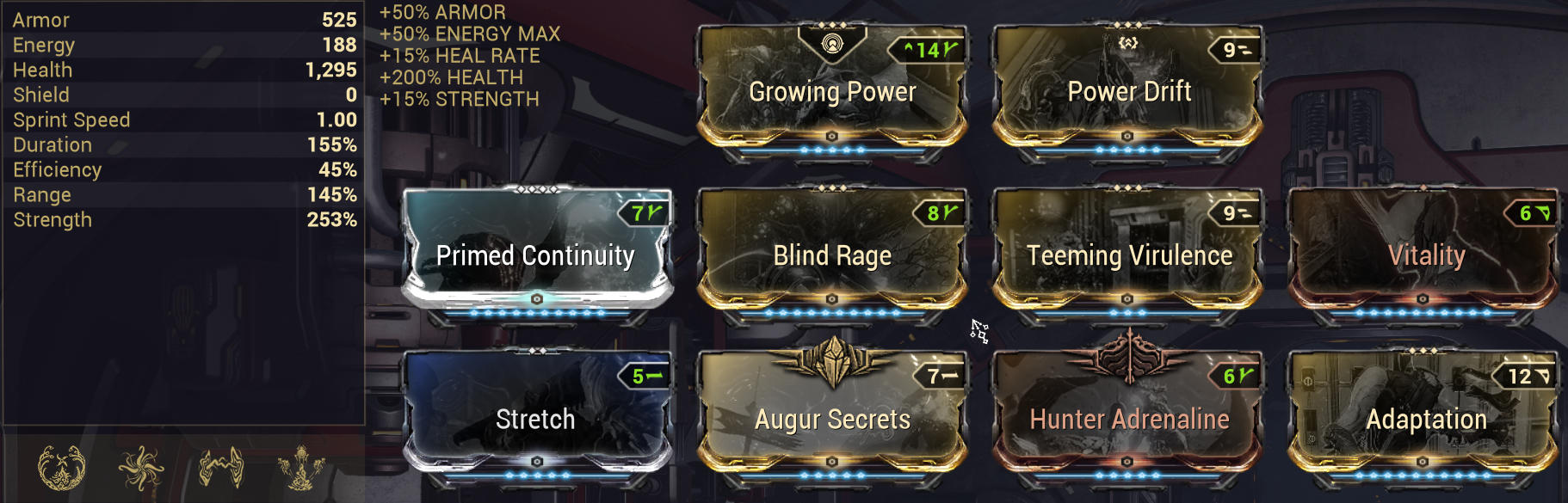 Rhino's Roar - In place of Parasitic Link or Ravenous in the Virulent Scourge Build if one wants a way to further increase Primary Weapon Damage.